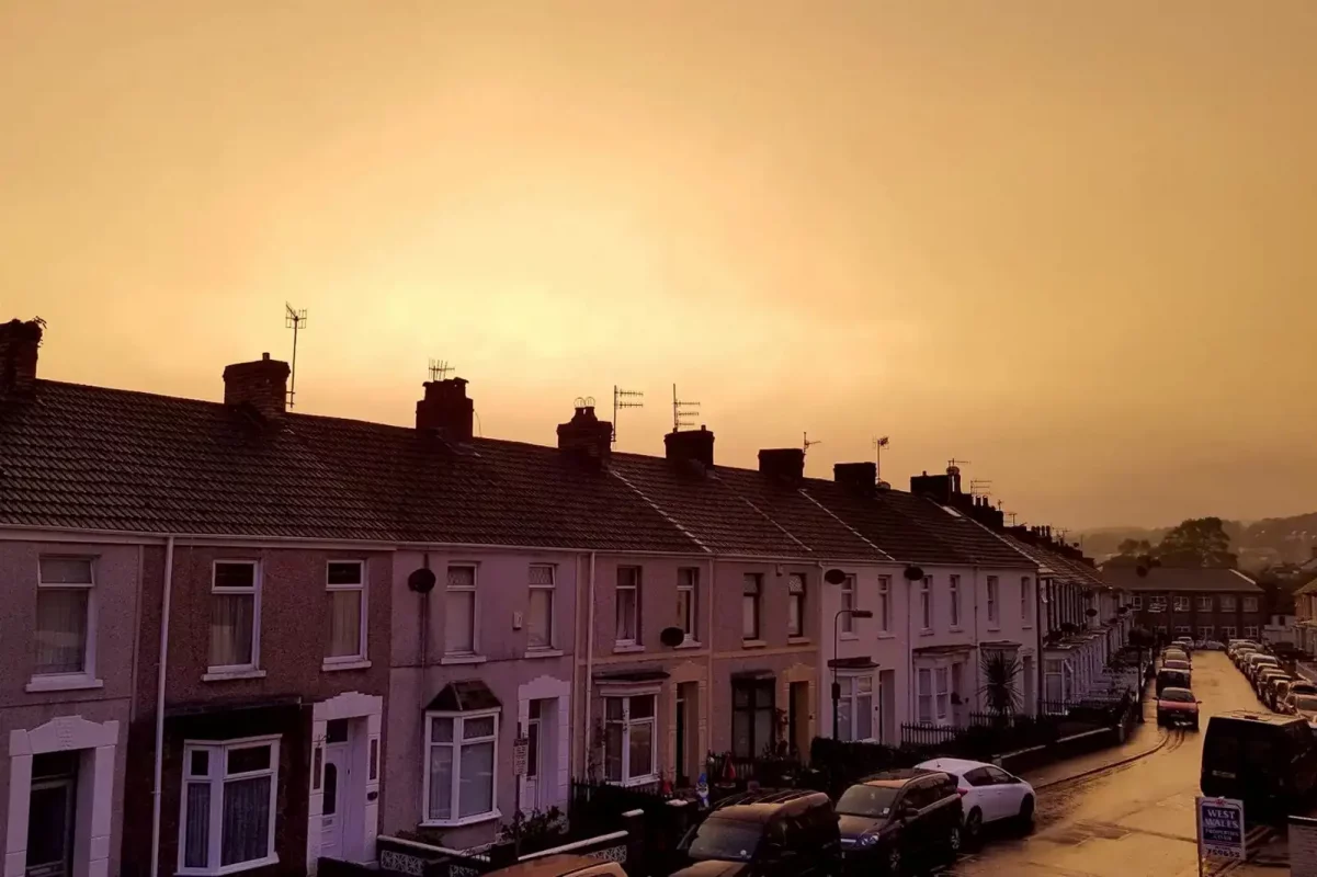 Terraced residential houses in Exeter showing typical older housing streets where ageing drainage systems and pipework may affect water flow